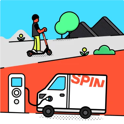 Spin will achieve net negative emissions - removing more emissions than we produce - through electrified operations, renewable power, lower manufacturing impacts, and aggressive mode shift away from private automobiles.